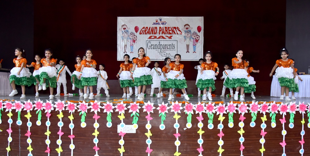 Jodhamal Public School celebrated Grandparents’ Day with remarkable zest to show the love, affection and gratitude towards their elders. School had put up a wonderful show where the little ones surprised each and every one by putting up scintillating performances for their beloved grandparents. The programme kickstarted with the Hanuman Chalisa, which invoked the blessings of the Almighty. Fusion Frenzy, Happy Vibes, Whispers of the Wind, Nature’s Harmony, Legacy Remixed, Joyful Melody, Chasing Dreams and Pride of India dance were the highlights of the show. Zumba and free style dance performances presented by the little kids stole the show, followed by a party song by our juniors. Each item was a notch better than the other as the children wanted to showcase their love towards their Grandpaas & Grandmaas. Games and Fun-items arranged for the beloved grandparents brought about a mystical feel, bringing everybody closer to each other as they thoroughly enjoyed the activities. Active participation of all the grandparents in the games showed that age is just a number, and can never curb the zeal. The JMPians made everyone sway and enter their world of fun and frolic, thus making the Grandparents’ Day a huge success. The programme began with lighting of the auspicious lamp by the Chief Guest Ms. Sargun Shukla (IPS), Special Guests Mr. JP Singh IPS (Retd), Mr. Jagjit Kumar IPS(Retd), Mr. Nandan Kuthiala (Trustee) and Ms. Arati Kuthiala (Director). Welcome address was given by Dr. Deep Khare (Principal). The efforts of Mrs. Neetu Johri (Coordinator), Mrs. Deepali Puri (CCA Coordinator), the entire Pre-primary teachers - Ms. Dolly Chandhoke, Ms. Amita Charak, Ms. Anjali Gupta, Ms. Shriya Sharma, Ms. Priyanka Verma, Ms. Gagandeep Kour, Ms. Priyanka Salgotra, Ms. Kritima Sharma, Ms. Gurjeet Kour, Ms. Ashi Gupta and Ms. Kiran Singh and Dance Department - Ms. Shruti Bakshi, Ms. Shivali Rai, Ms. Arti Mahajan and Ms. Aarushika were appreciated by one and all. All Grandparents went highly satisfied and were very happy to see Jodhamal imparting values among Gen Next through plethora of fun-filled activities. Coordination, Cooperation, Love, mutual respect, team spirit, sacrifice for each other etc. are some of the values which are instilled through these programmes involving the Grandparents by inviting them to participate in the Grandparents’ Day. Vote of Thanks was given by Ms. Amita Arora (Vice-Principal). She appreciated the efforts of the entire team Jodhamal.