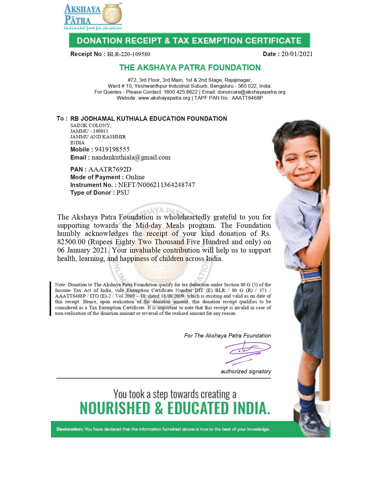 Trustee of Jodhamal School, Mr. NandanKuthiala thanked the secretary Education, Mr. Farooq Ahmed Shah, IAS, Director Education, Mr. Rakesh Srangal, KAS & Joint Director Edcuation, Mr. Charandeep Singh, KAS for their assistance in formulating the list of scholarship winners from the remote areas of the state.