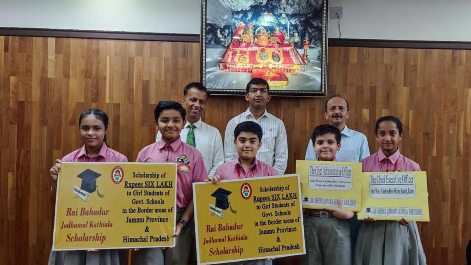In the recently held function the first lot of Rai Bahadur Jodhamal Kuthiala scholarship for the year 2023 were distributed in Collaboration with Shri Mata Vaishno Devi Shrine Board and Shri Mata Vaishno Devi Narayana Superspeciality Hospital.. Mr. Anshul Garg (IAS), the CEO of Shri Mata Vaishno Devi Shrine Board graced the occasion and accepted the scholarship on behalf of these two institutions. Mr. Anshul Garg spoke to the students and stressed on the importance of inculcating the spirit of “Giving Back to the Society” in the students. In August, the Jammu Chapter of the scholarship would be held, wherein 60 to 70 scholarships will be distributed to the meritorious girls students studying in class 10 th , 11 th and 12 th of Govt. Schools of border area of Jammu Province. 08 girls each from the border areas of Jammu, Samba, Poonch, kathua and Rajouri would be distributed. In September, the Himachal Pradesh Chapter Scholarship to 25 girls would be awarded. Also Jodhamal School has introduced the theme “We are the World”, It indicated that whole society helps us nurture into a true human being and how we have reciprocated it back to the society. We are the world highlighted the contribution of the school towards the society in the form of donations, scholarship, Charity, plantation, awareness camps, street plays, cleanliness drives and other means. Trustee, Mr. Nandan Kuthiala and Prinicpal, Mr. Girish Kumar, of Jodhamal were also present on the occasion.