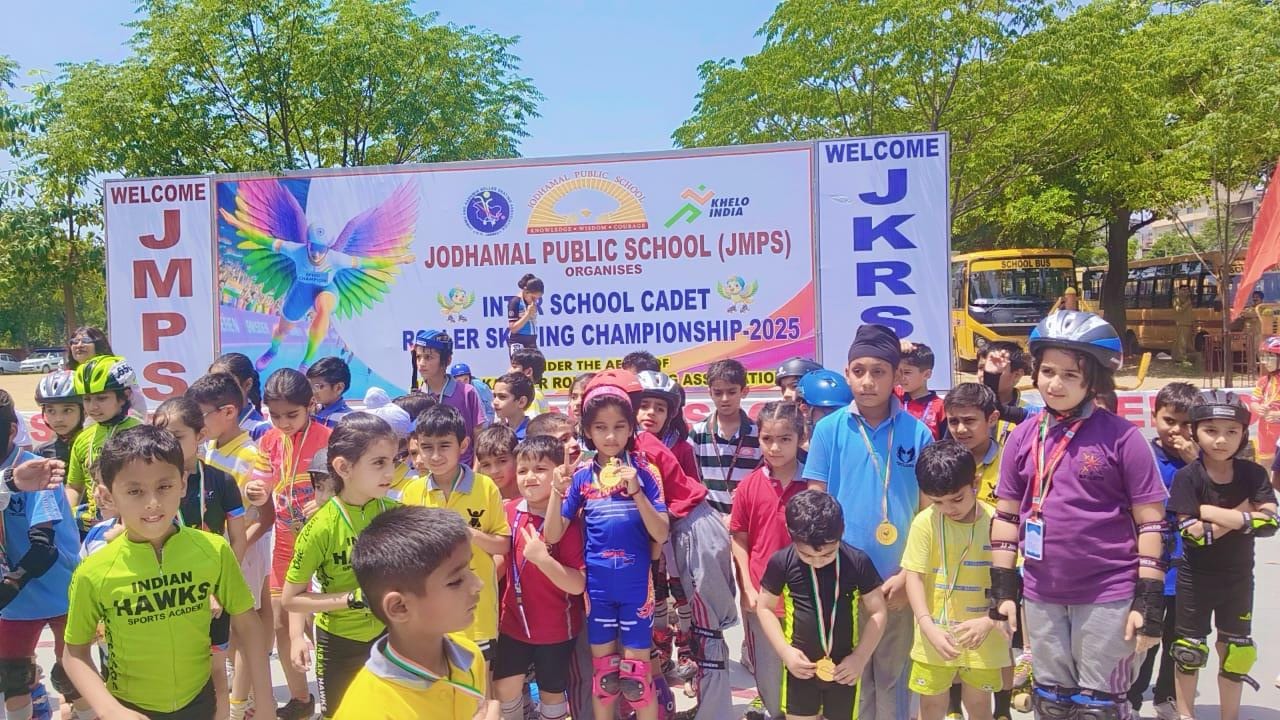Jodhamal Public School successfully organized an Interschool Cadet Roller Skating Championship, which witnessed enthusiastic participation from 18 schools across the region. The event provided a vibrant platform for young cadet skaters to showcase their talent, discipline, and competitive spirit in a well-coordinated and high-energy environment. More than 180 students participated in the event.The Chief Guest for the event was Mr. Rajesh Anand, who is currently the coach of the Indian team and has captained the Indian Roller Skating team. Other guests were Mr. Prithpal Singh, Vice President of the Jammu & Kashmir Roller Skating Association, and Mr. Jatin Sabarwal, an international silver medalist and state awardee. Their encouragement and support added great value to the event and further motivated the participating students. The event was flagged off by Mr. Nandan Kuthiala, the Trustee of Jodhamal School. After intense competition Jodhamal School emerged as the overall champion with a total of 125 points. International Delhi Public School secured the second position with 70 points, followed by Presentation Convent School in third place with 54 points. The performances reflected the high standards of training and enthusiasm among young skaters from all the schools. The host school, Jodhamal Public School, proudly celebrated the achievements of its medal- winning students. Among the gold medalists were Preesha Gupta, Aditya, Pawit Gupta, Naavish, Itea, Simarjot Singh, Abhynash Jamwal, Tasyaun Singh, Pavitt, Abhite Puri, Aaditya Gupta, and Naisha.Silver medals were won by Zaiyat, Nalinkash, Abhite Puri, Hriday, Kavisha, Ayanish Singh, and Sahraj. Bronze medal winners included Kaarvish Gupta, Asadyaan, Azaan, Mishika, Mysha Kaur, Yuvaan Talwar, Aryan, Raionya Piroch, and Hridoy. The event was organised and co-ordinated by Mr. Kamal Anand, the Secretary of the Skating Federation. Ms. Neetu Johri, Headmistress was also there to encourage the students.The overall management of the event was done by Ms. Deepali Puri, CCA Coordinator Jr Wing. The event was a resounding success and reaffirmed Jodhamal Public School’s commitment to fostering excellence not just in academics, but also in sports and extracurricular activities. The school continues to provide its students with opportunities to compete at the highest levels and grow into confident, capable individuals.