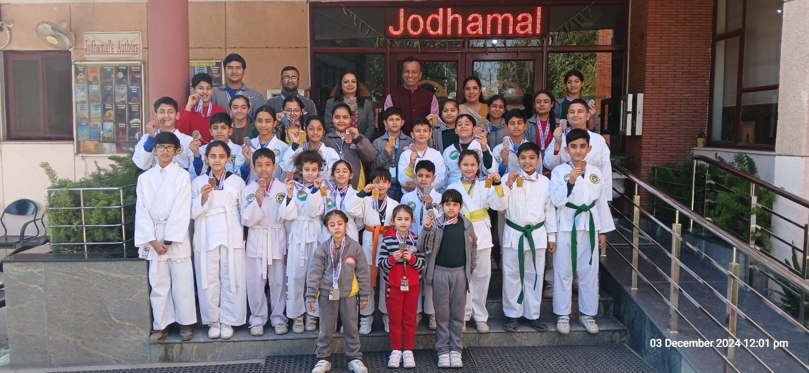 Jodhamal Public School has achieved yet another milestone in its illustrious journey of excellence, delivering a remarkable performance at the 21st State Matsogi-do Championship, held over three action-packed days at the esteemed Indoor Sports Complex, Bhagwati Nagar, Jammu. Guided by the expertise and dedication of Mr. Vishal Samrat and Ms. Savneet Kaur, the young athletes displayed exceptional skill, resilience, and sportsmanship, culminating in a stellar medal tally of 11 Gold, 8 Silver, and 13 Bronze Medals. The Gold Medallists who brought glory to the school include Avnit (1D), Siddharth (3E), Karmanya (5B), Araina (2A), Ziyana (3E), Samayra (4F), Kashvi (4E), Anayla (5D), Namit (5A), Abdur Rahim (6F), and Smaiyra Arora (9A). The Silver Medallists, who showcased incredible perseverance, are Zaviyar (3F), Aavya (UKG), Hargun (1F), Shaivya (5C), Aamna (6D), Vinayak (6F), Vihaan (6F), and Gurleen Kour (9F). The Bronze Medallists, whose performance was a testament to their unwavering dedication, include Yashasva (4D), Aaryav Jain (5F), Aradhya (4F), Aarna (5C), Aleena (6D), Yashodhra (6C), Shiven (6A), Ruhaan (6D), Medhansh (6F), Evyansh (6B), Shreyasi (8D), Mohd Aleem (10), and Kashin (11). This extraordinary feat brought immense pride to the school and was applauded by the Trustee, Director, Principal, and Vice Principal of Jodhamal Public School, who extended their heartfelt congratulations to all the medal winners. They commended the students for their dedication, discipline, and determination, and praised the coaches, Mr. Vishal Samrat and Ms. Savneet Kaur, for their relentless efforts in honing the skills of the young athletes. The championship served as a platform for the students to showcase their talent and grit, reinforcing Jodhamal Public School’s commitment to nurturing excellence in both academics and extracurricular activities. This remarkable success has set a new benchmark for the school, and the Jodhamal family looks forward to achieving even greater laurels in the future.
