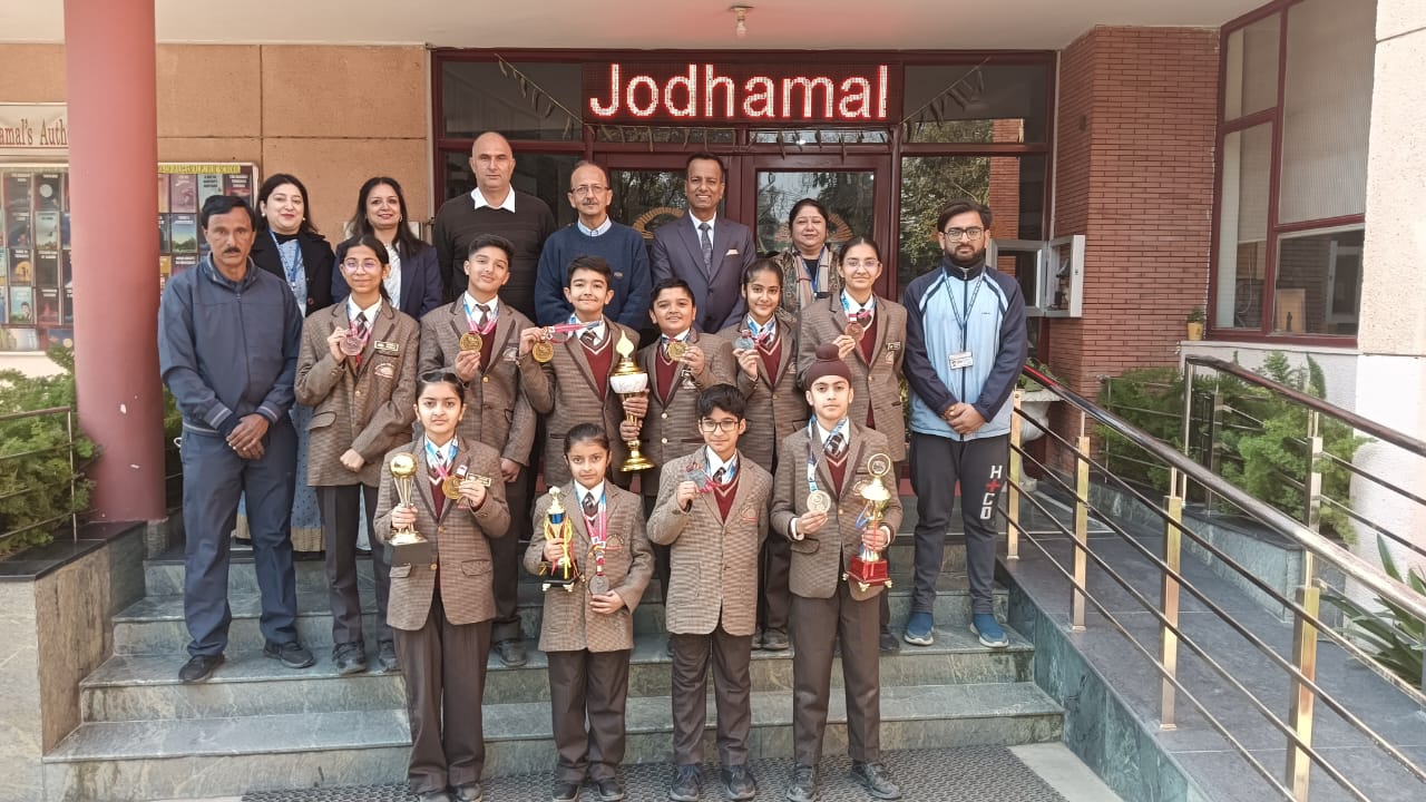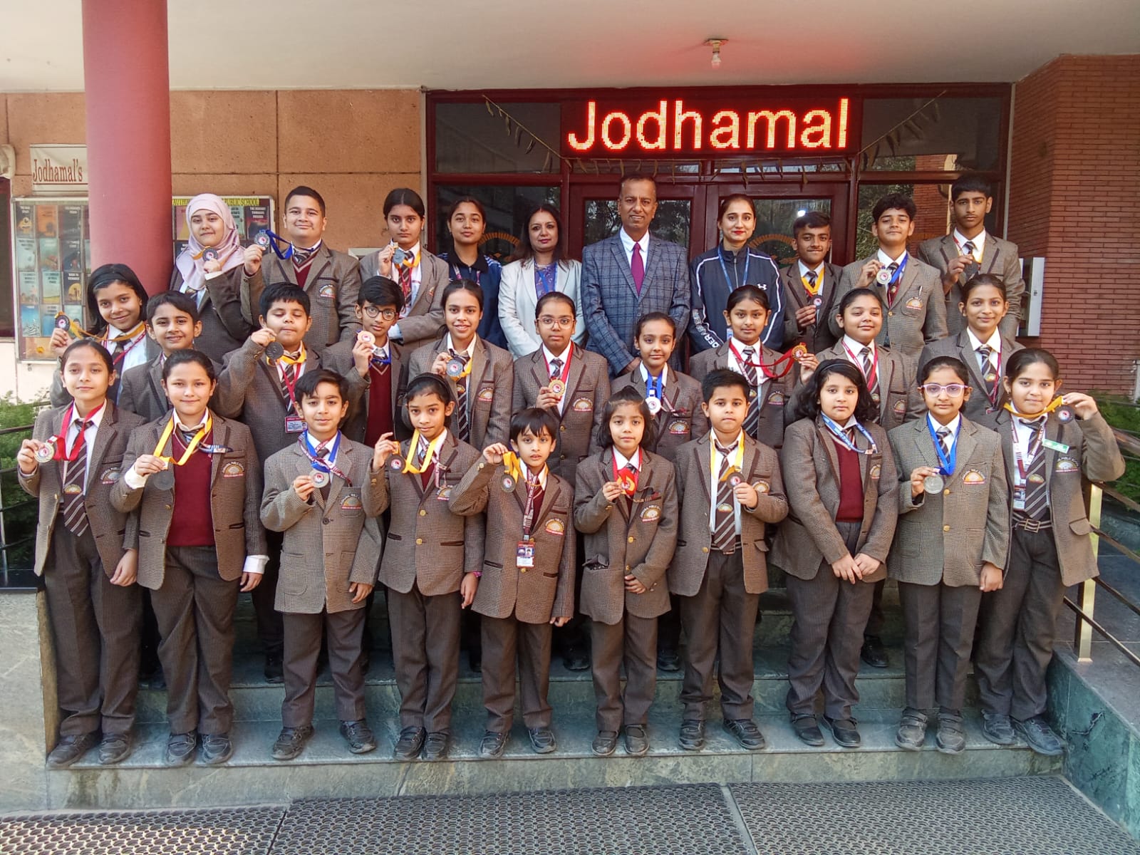 Students of Jodhamal Public School put up an outstanding performance at the Khelo India Women League 2025. Fourteen talented girl athletes represented the school and achieved remarkable success by securing 12 medals in total, including 2 Gold, 3 Silver, and 7 Bronze, Gold Medal Winners are : Sharanya Gupta and Smaira Mahajan Silver Medal Winners are: Gursangad Kaur, Chitrakshi Kotwal and Navika Gupta Bronze Medal Winners are: Myra Verma,Saavya Gupta, Anaya Gupta, Rehanshi Mahajan, Kavya Langar, Priyal Luthra and Anika Verma The achievement was made possible by the continuous training and unwavering motivation provided by Coach Ms. Jahanvi Katal, who worked tirelessly to prepare the participants for the league. The Trustee, Mr. Nandan Kuthiala; Director, Ms. Arati Kuthiala; Principal, Dr. Deep Khare; and Vice Principal, Ms. Amita Arora, applauded the students and the coach for their exemplary dedication, discipline, and sportsmanship. The event witnessed energetic participation and competitive spirit, and the girls of Jodhamal stood out with confidence and skill, proving their excellence on the field Jodhamal Public School congratulates all the medalists and participants for bringing laurels to the institution and wishes them even greater success in the future.